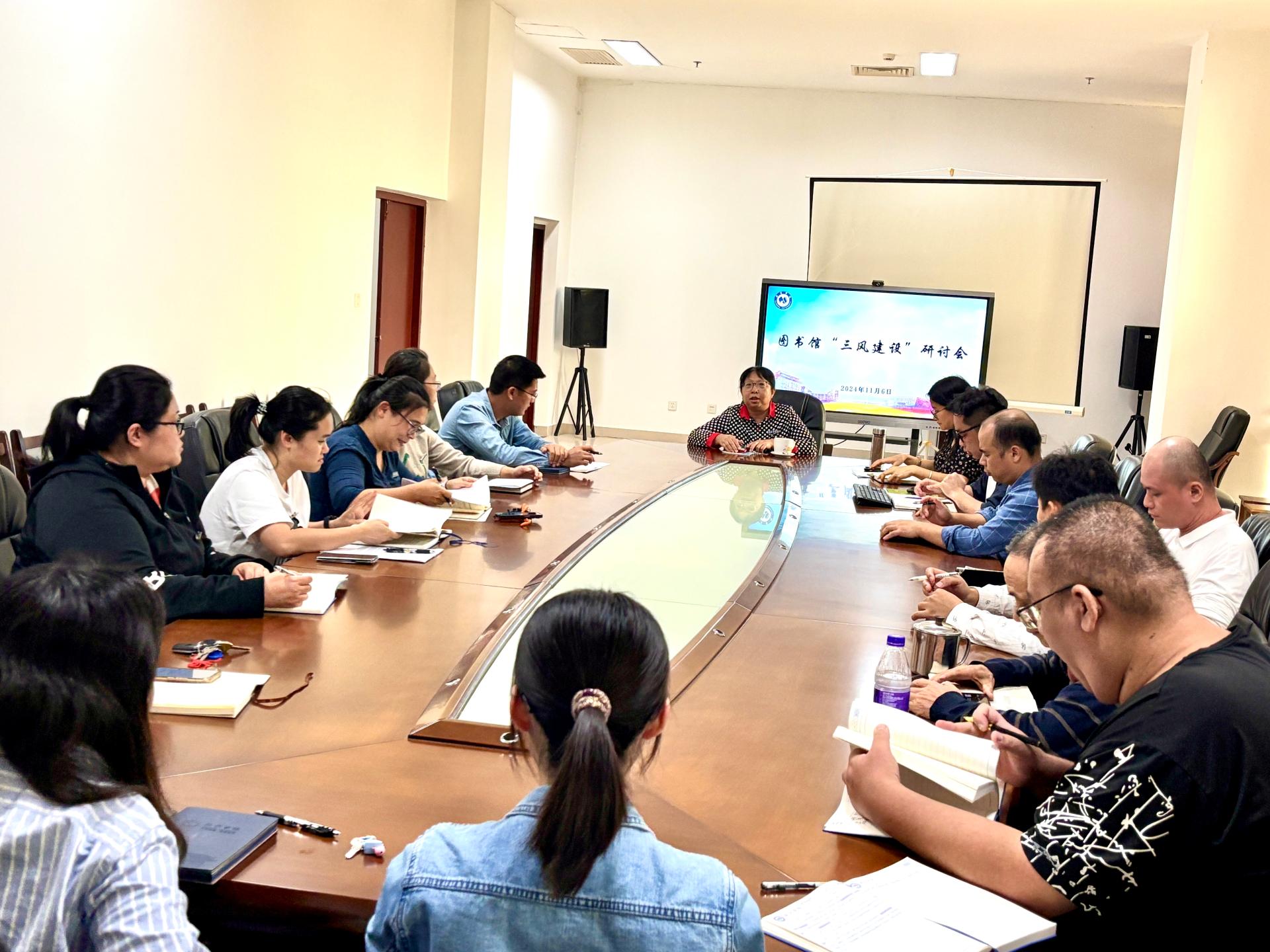 11月6日下午,图书馆(档案馆)组织全体馆员在八楼会议室召开了第一次全馆校风建设大研讨,活动由馆长谢清主持。