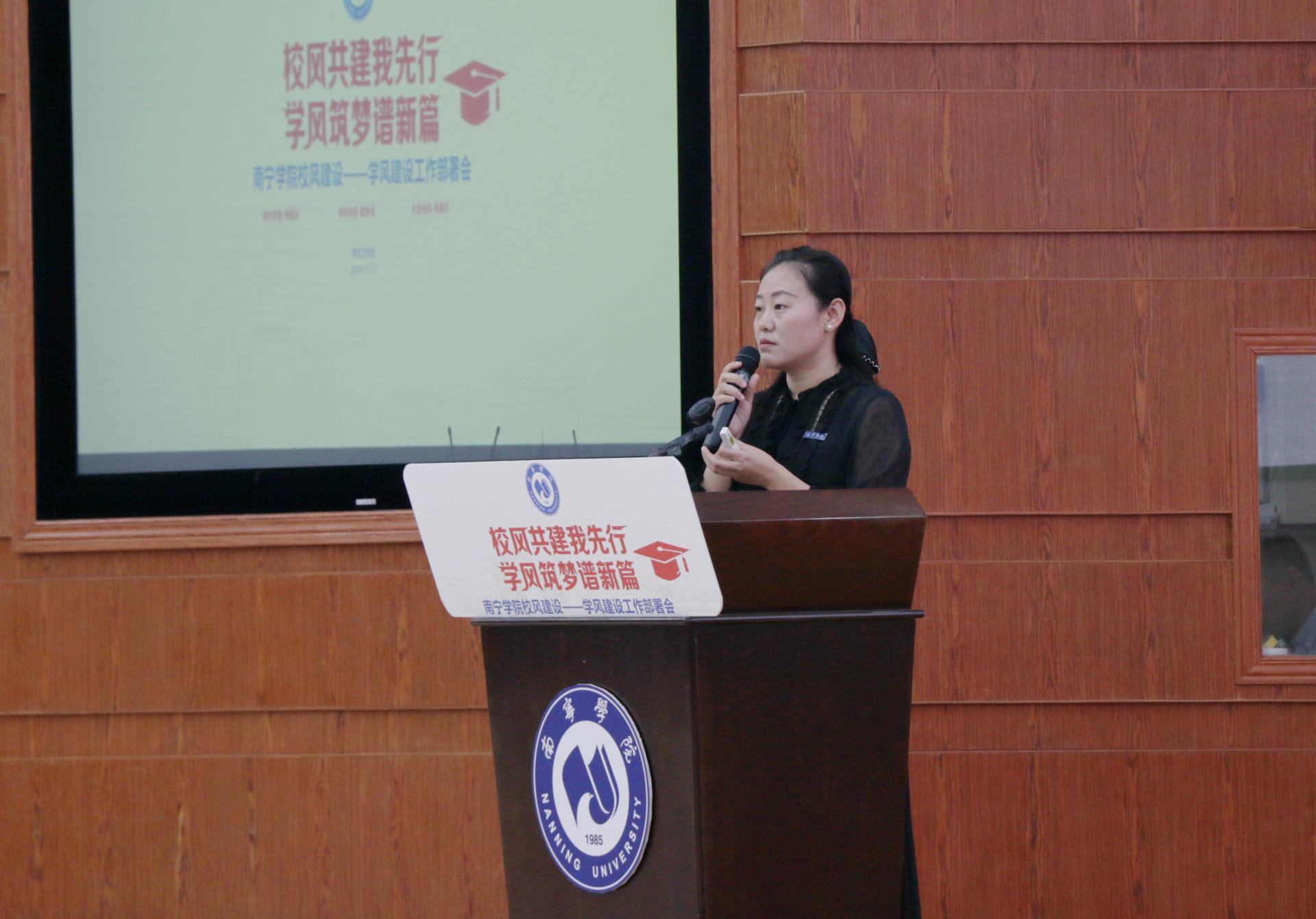 党委学工部部长、学工处处长王静静在会上对学校校风建设的主文件进行解读,重点介绍了与同学们息息相关的《Beat365中文官方网站学生综合素质提升行动方案》《Beat365中文官方网站班风建设指导意见》文件,指出当前学风建设中面临的突出问题,并就如何加强基层班级的班风建设,全面提升学生综合素质等工作进行了详细部署。