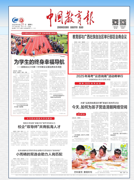 【媒体看南院】中国教育报、广西日报、广西广播电视台等媒体报道教育部与广西壮族自治区举行部区会商会议