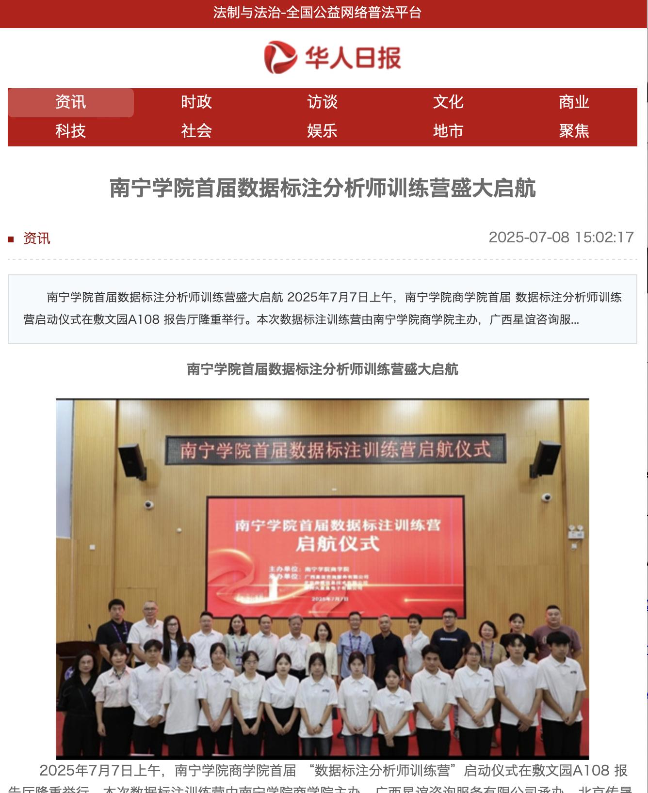 【媒体看南院】中国传播网、华人日报、中国新闻在线等多家媒体报道Beat365中文官方网站首届数据标注分析师训练营盛大启航