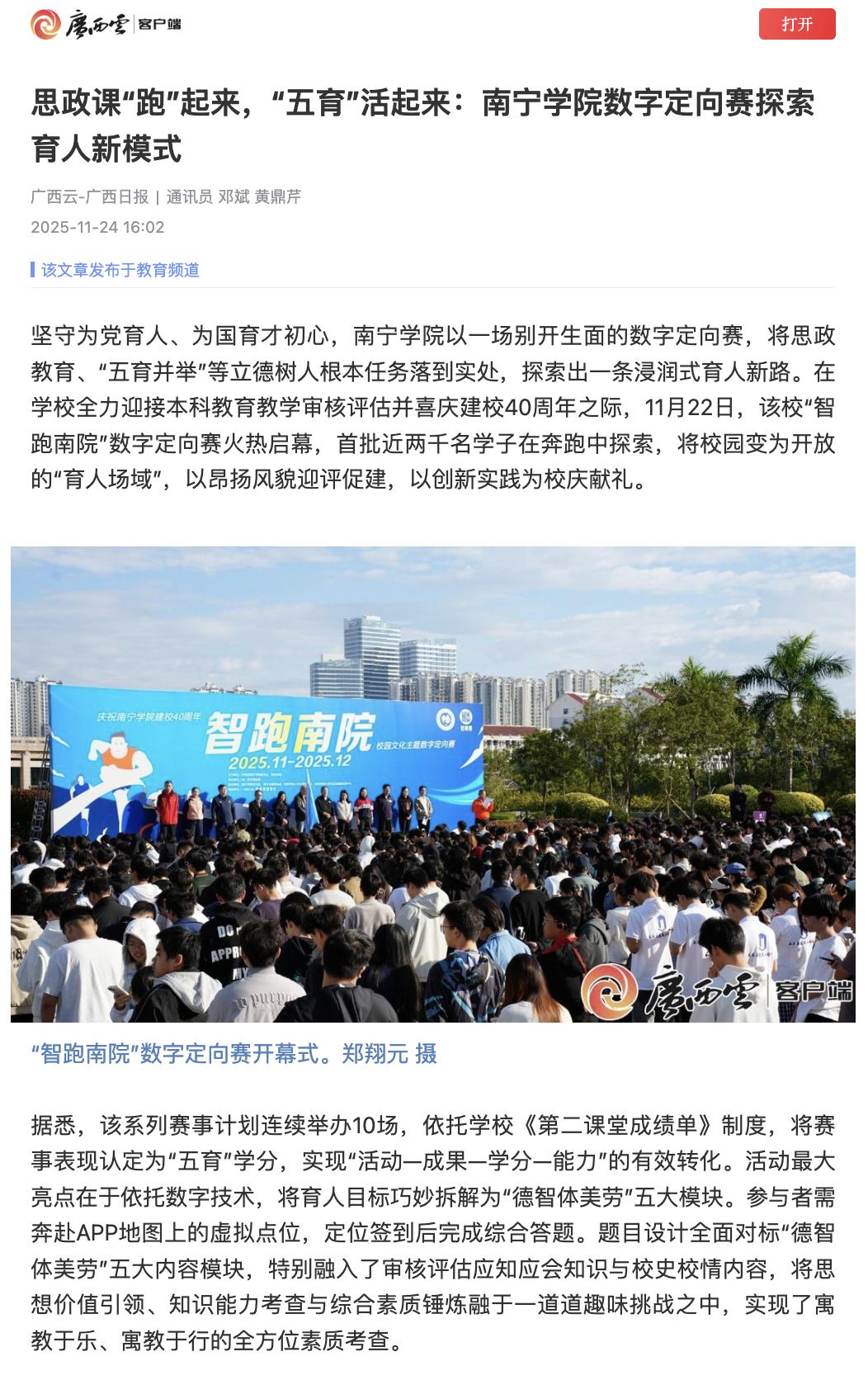 【媒体看南院】广西日报报道思政课“跑”起来,“五育”活起来:Beat365中文官方网站数字定向赛探索育人新模式