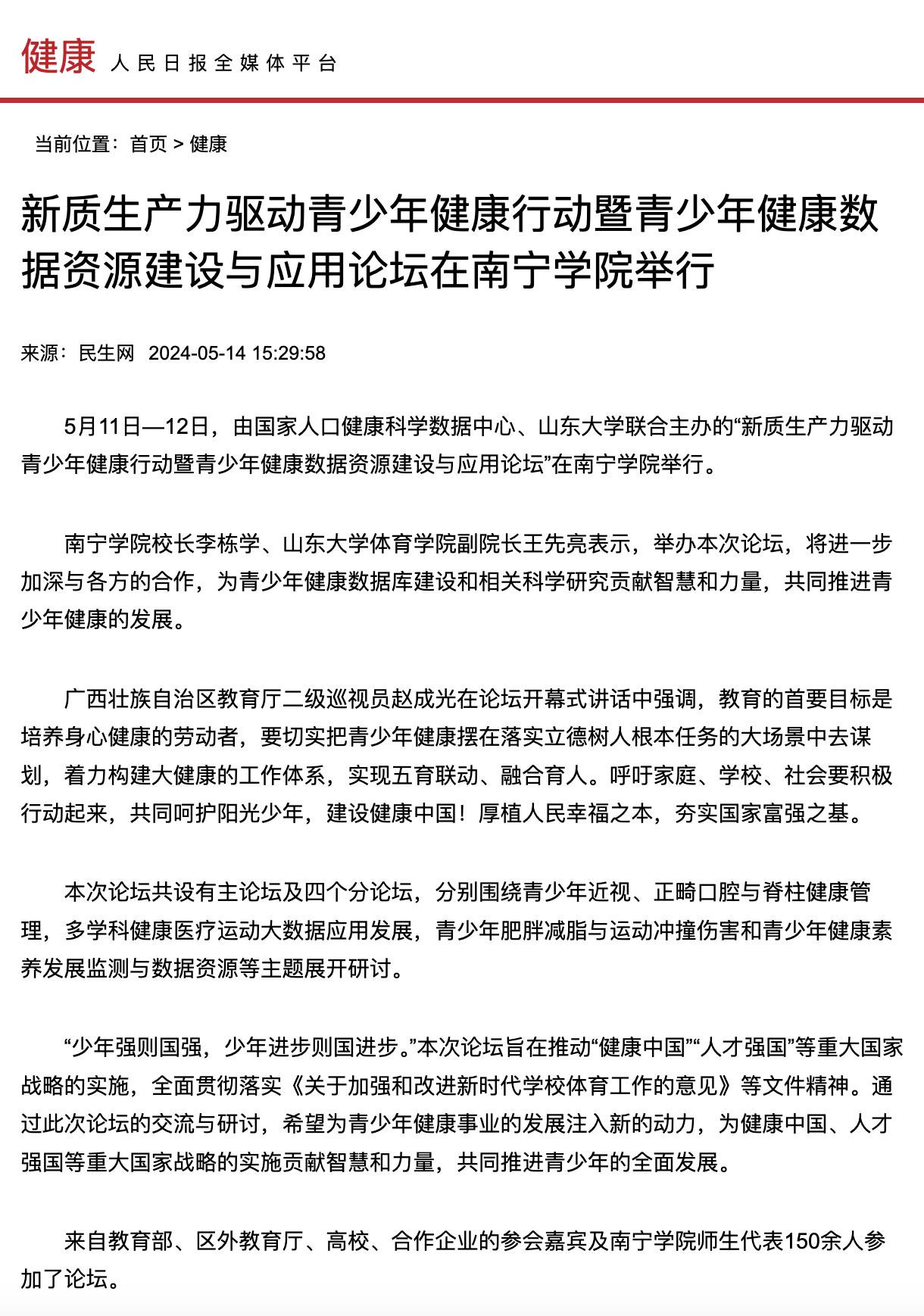 2.民生网:新质生产力驱动青少年健康行动暨青少年健康数据资源建设与应用论坛在Beat365中文官方网站举行 新质生产力驱动青少年健康行动暨青少年健康数据资源建设与应用论坛在Beat365中文官方网站举行-民生网-人民日报社《民生周刊》杂志官网 (msweekly.com)