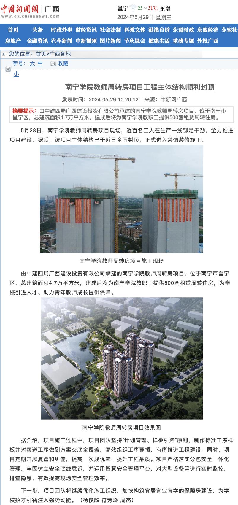 【媒体看南院】中新网报道我校教师周转房项目工程主体结构顺利封顶
