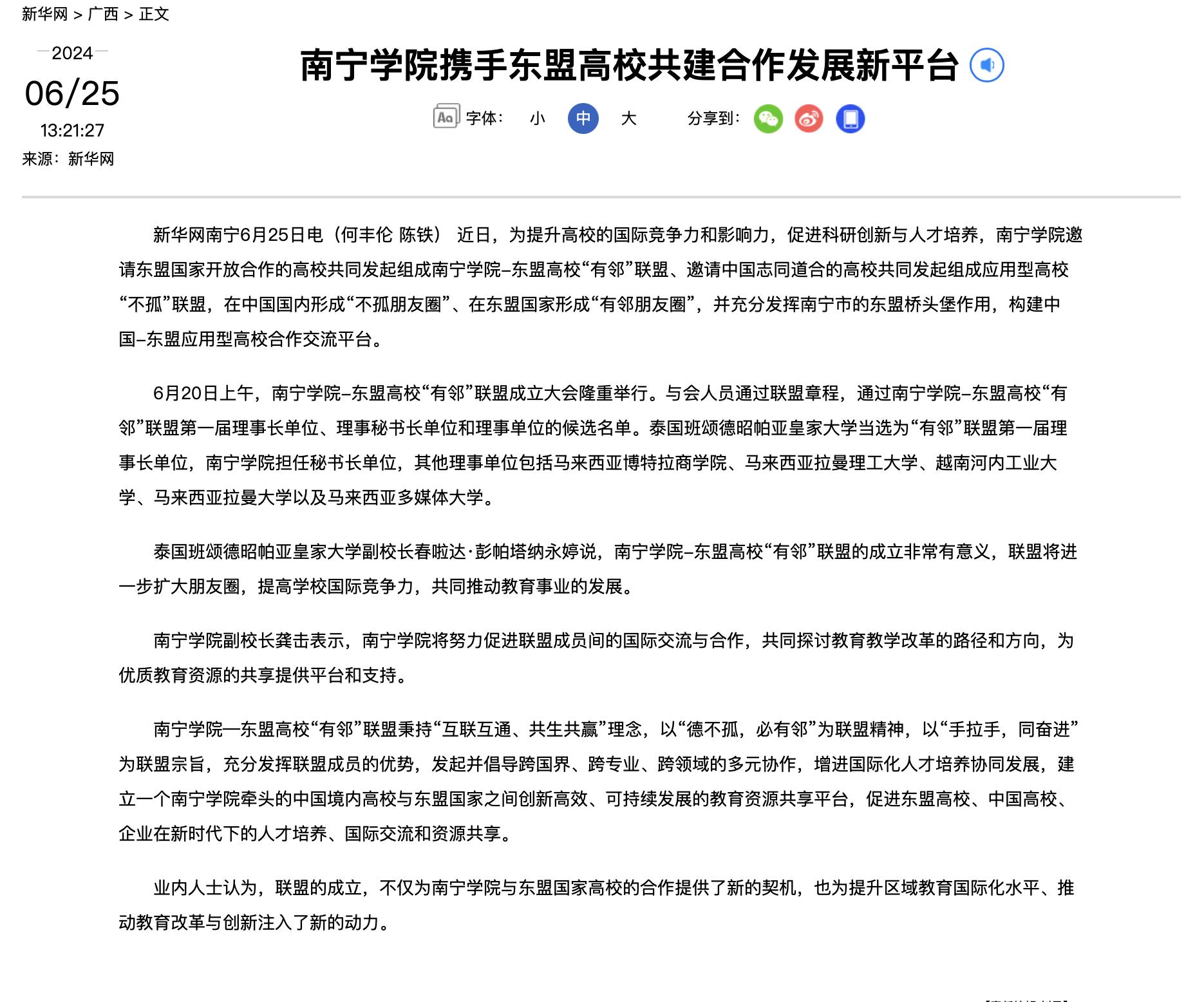 1.新华网:Beat365中文官方网站携手东盟高校共建合作发展新平台 http://www.gx.xinhuanet.com/20240625/842d21668b604a70839034ddd6178022/c.html