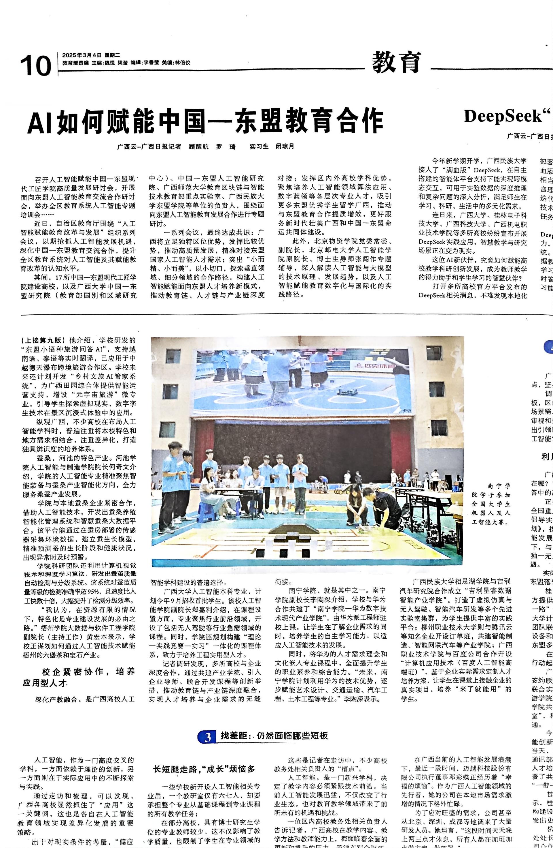 【媒体看南院】广西日报报道广西人工智能学科建设中的"南院经验"
