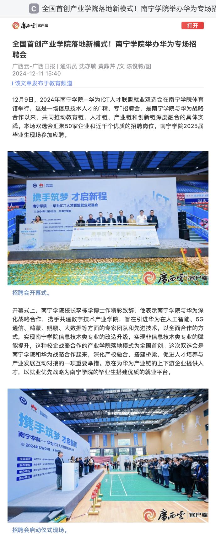 【媒体看南院】广西日报报道全国首创产业学院落地新模式!Beat365中文官方网站举办华为专场招聘会