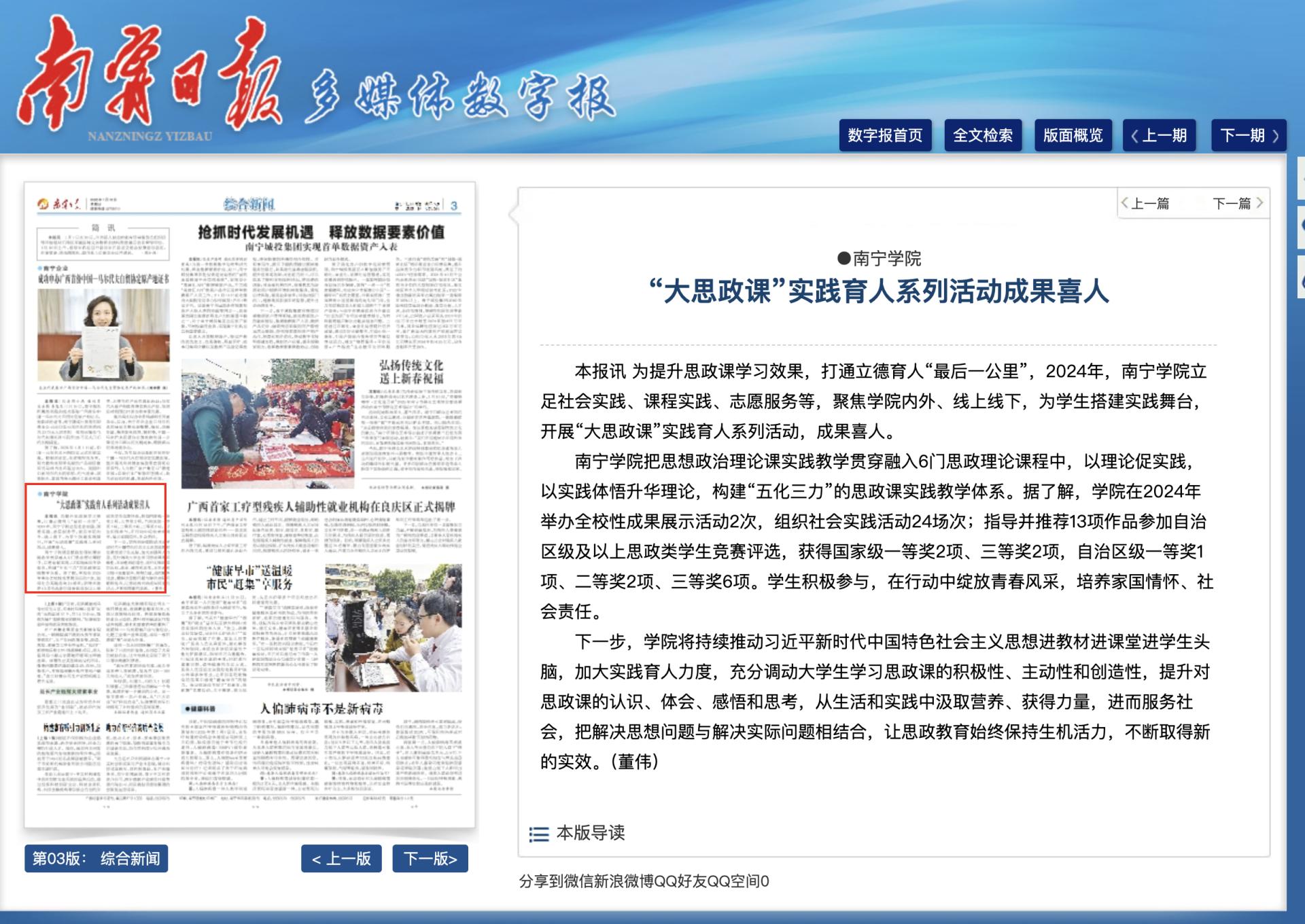 【媒体看南院】南宁日报报道Beat365中文官方网站“大思政课”实践育人系列活动成果喜人