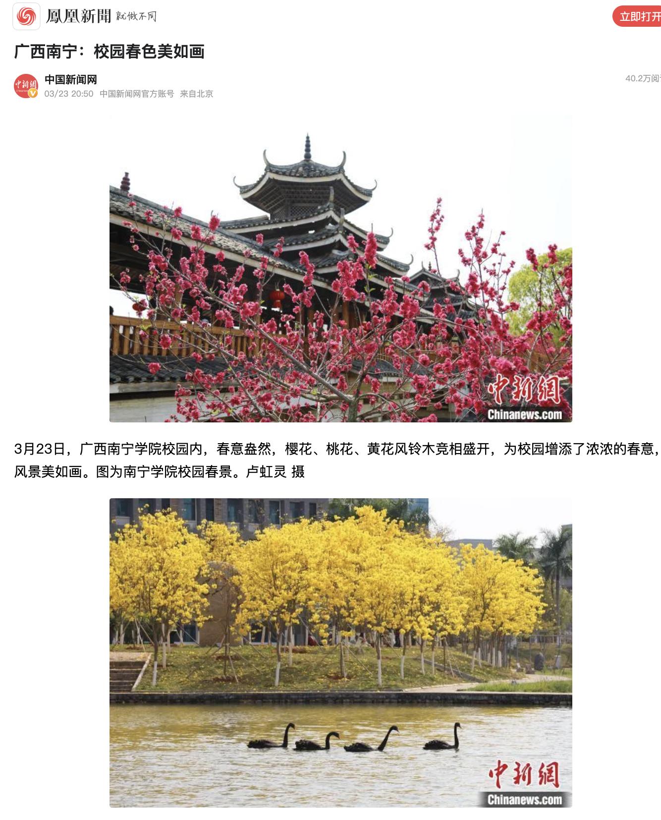 5.搜狐新闻网:广西南宁:校园春色美如画https://3g.k.sohu.com/t/n874273021?serialId=cb9b640952d9d60e1768e89479a5fa45&showType=874273021