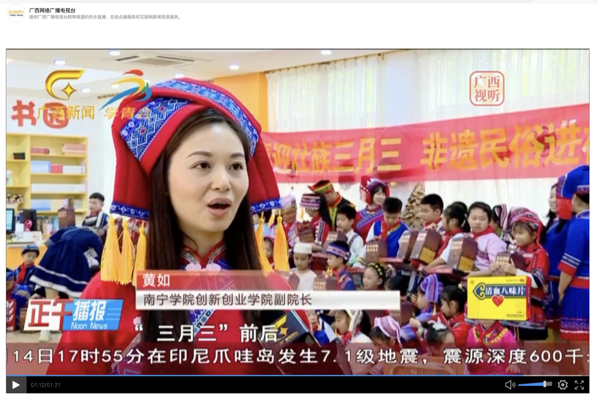 1.广西电视台:喜迎壮乡“三月三” 非遗民俗进校园 https://h5.gxtv.cn/html/article/wapArticle.html?dataSource=0&objId=8ed0390f6f5648fdb7a702f4d7978953