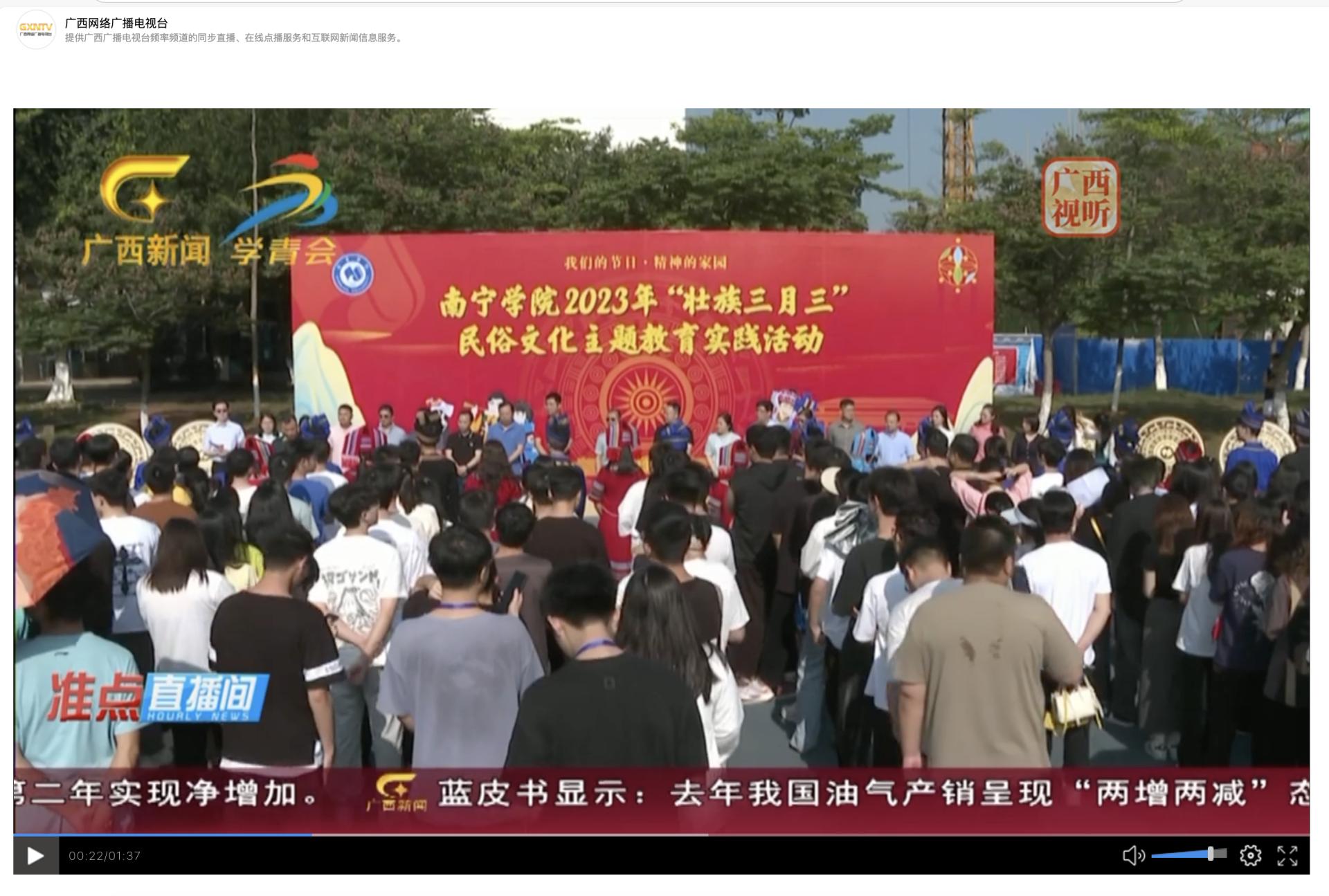【媒体看南院】广西电视台报道民俗文化主题教育实践活动丰富多彩 Beat365中文官方网站3000多名师生现场体验“壮族三月三”魅力