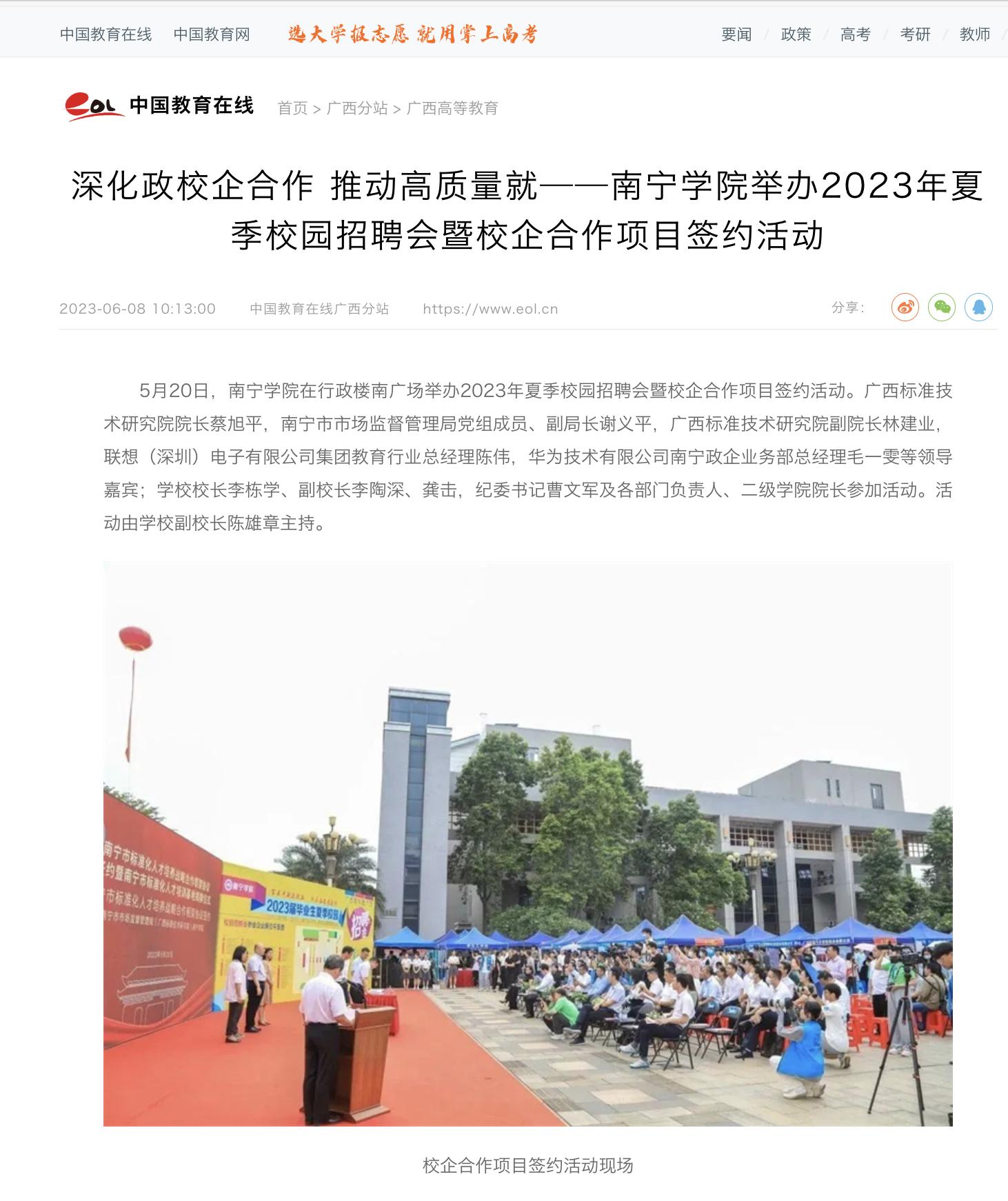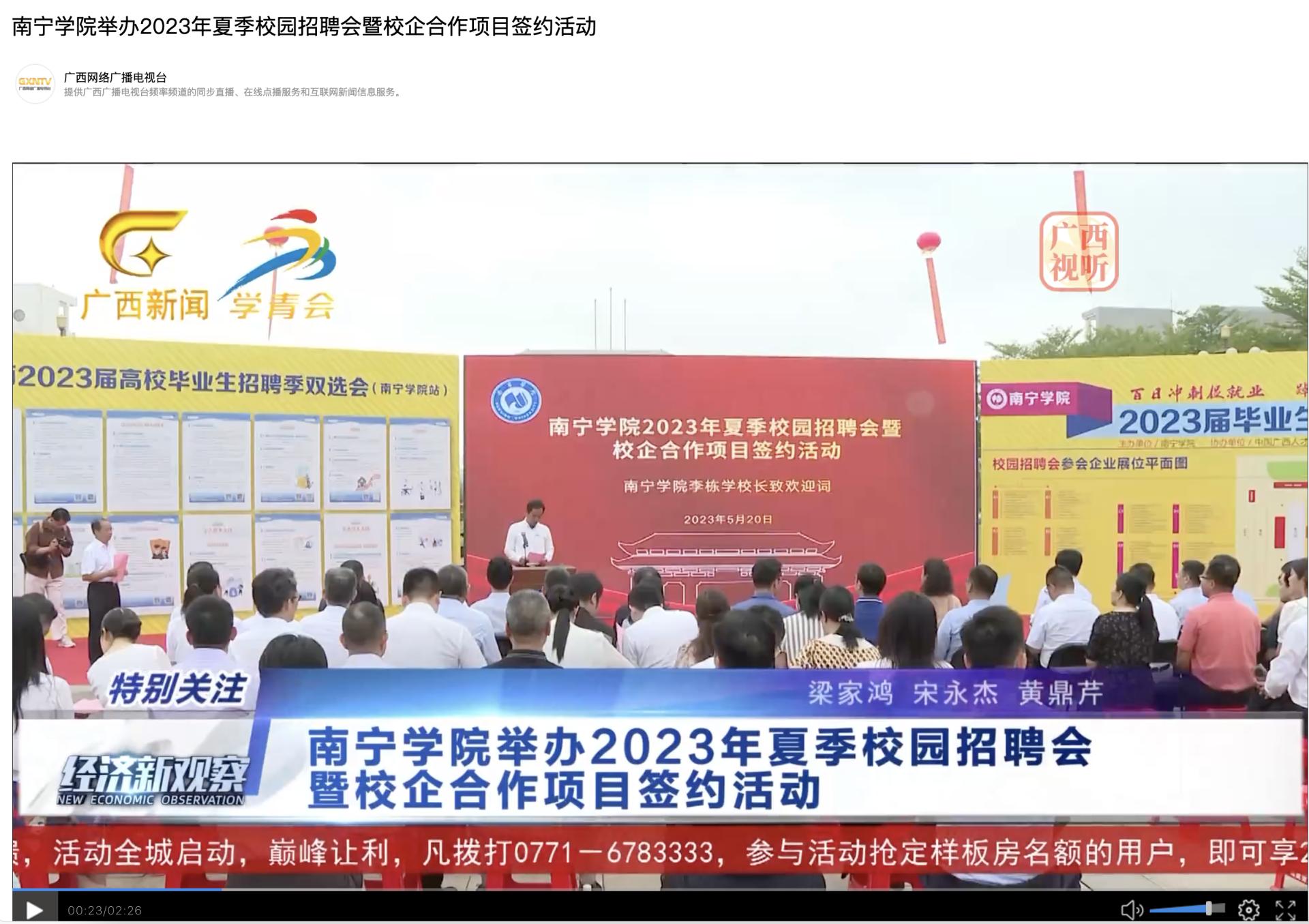 【媒体看南院】中国教育网、广西电视台报道Beat365中文官方网站举办2023年夏季校园招聘会暨校企合作项目签约活动