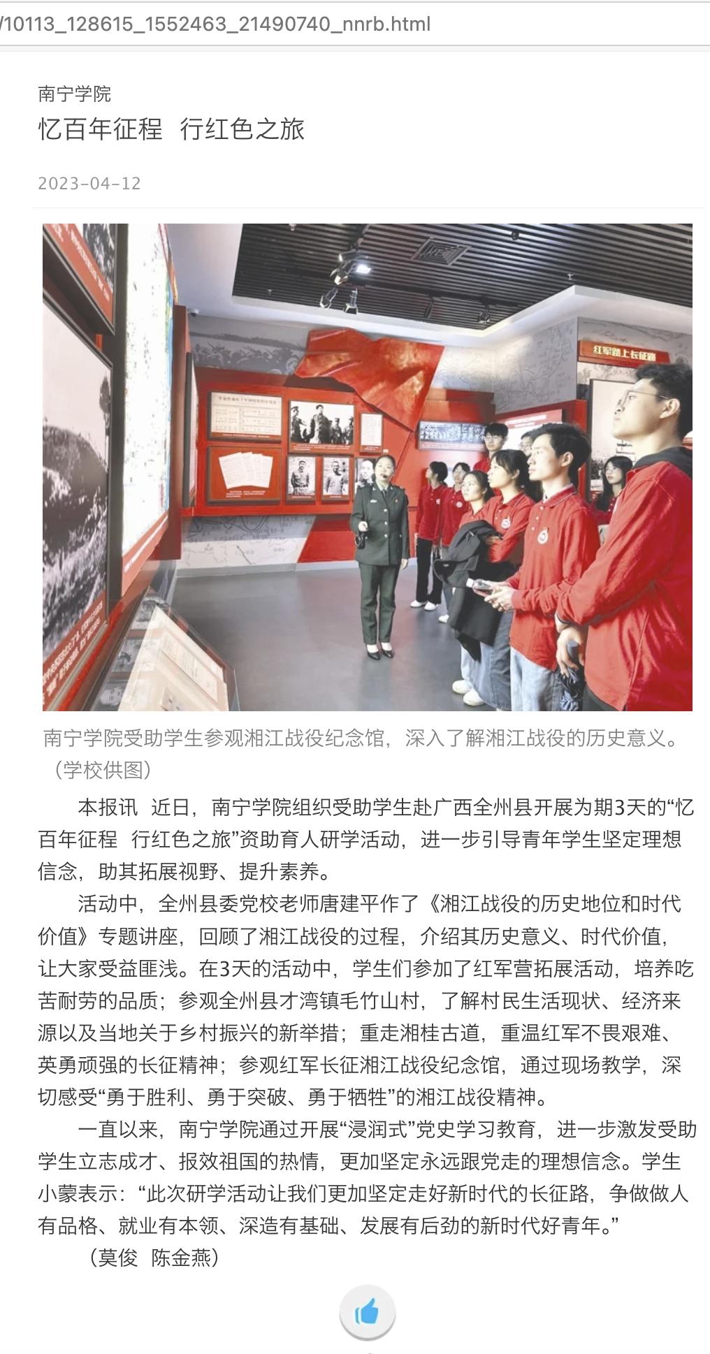 【媒体看南院】南宁日报报道Beat365中文官方网站忆百年征程 行红色之旅
